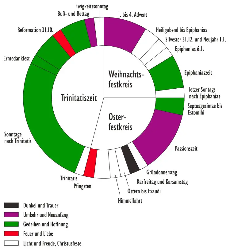 Das Kirchenjahr bezeichnet die jährlich wiederkehrende Abfolge religiöser Feste und Feierlichkeiten. Es orientiert sich an den kirchlichen Feiertagen und beginnt mit dem 1. Adventssonntag und schließt Ende November mit dem Ewigkeitssonntag oder Totensonntag.