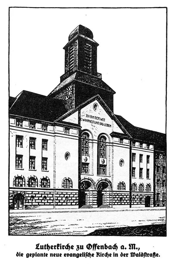 Am 24. Juni 1912 war es soweit: Die Arbeiten zum Bau Lutherkirche in der Waldstraße haben begonnen. Pfarrer Arthur Müller schreibt in der „Festschrift zur Erinnerung an den Tag der Einweihung der Lutherkirche zu Offenbach a. M.“ von 1914: „Nachdem die beiden Häuschen auf dem Bauplatz niedergelegt waren, wurden an dem genannten Tag die Gerüste aufgestellt und mit umfangreichen Erd- und Grundmauerarbeiten begonnen.“