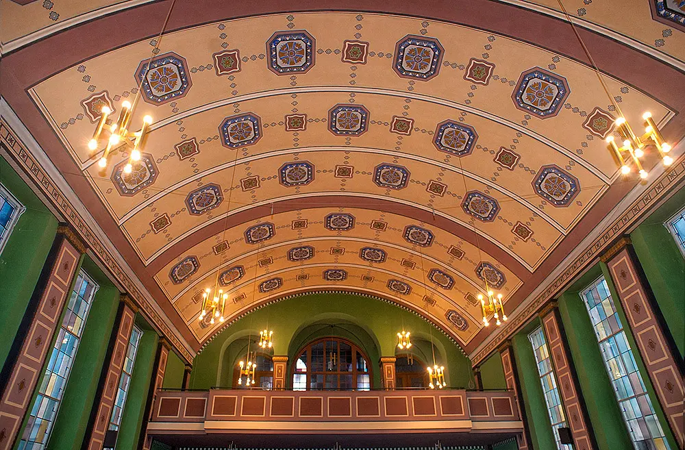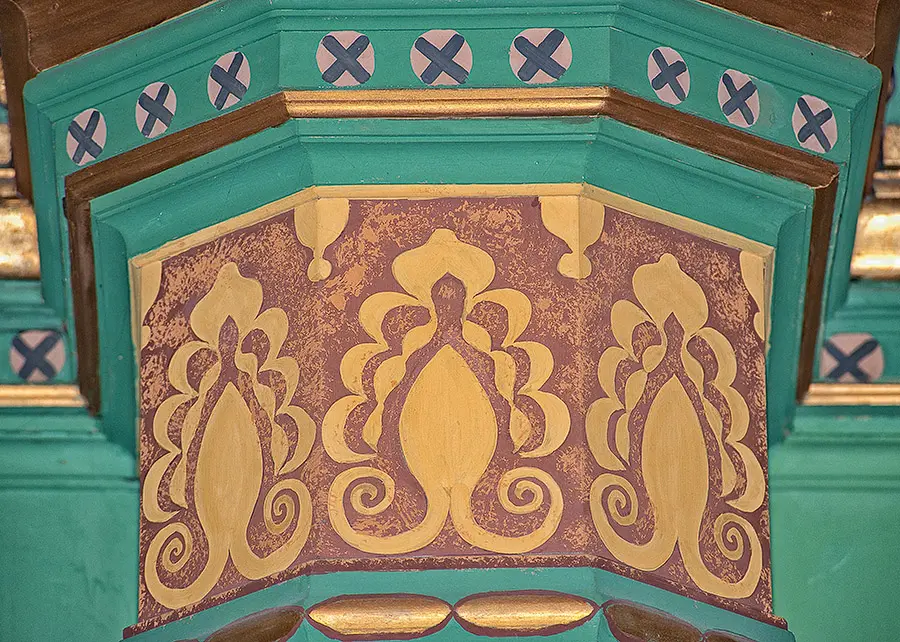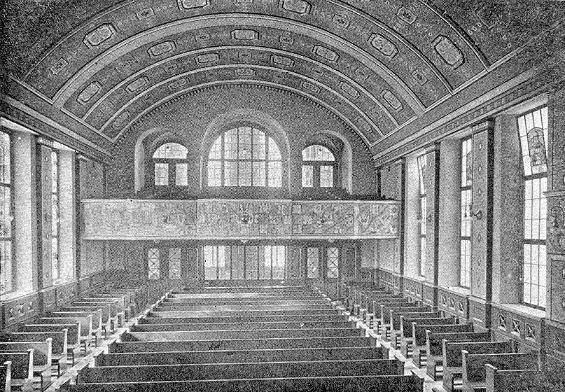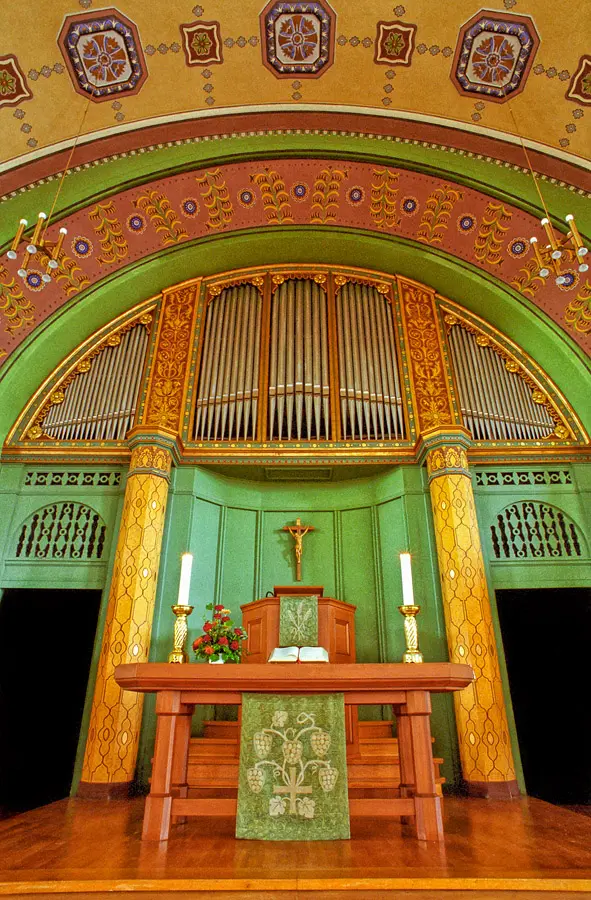 1984 konnten mit ein paar Ausnahmen die Jugendstilverzierungen von 1914 weitgehend wiederhergestellt werden. Die vollständig in blau verzierte Taufkapelle, die sich hinter der Altarwand befand wurde allerdings nicht wieder hergestellt. Sie wird heute als Sakristei genutzt. Unter der grauen Übermalung schlummert noch die in blau gehaltene Jugendstil Ausmalung.