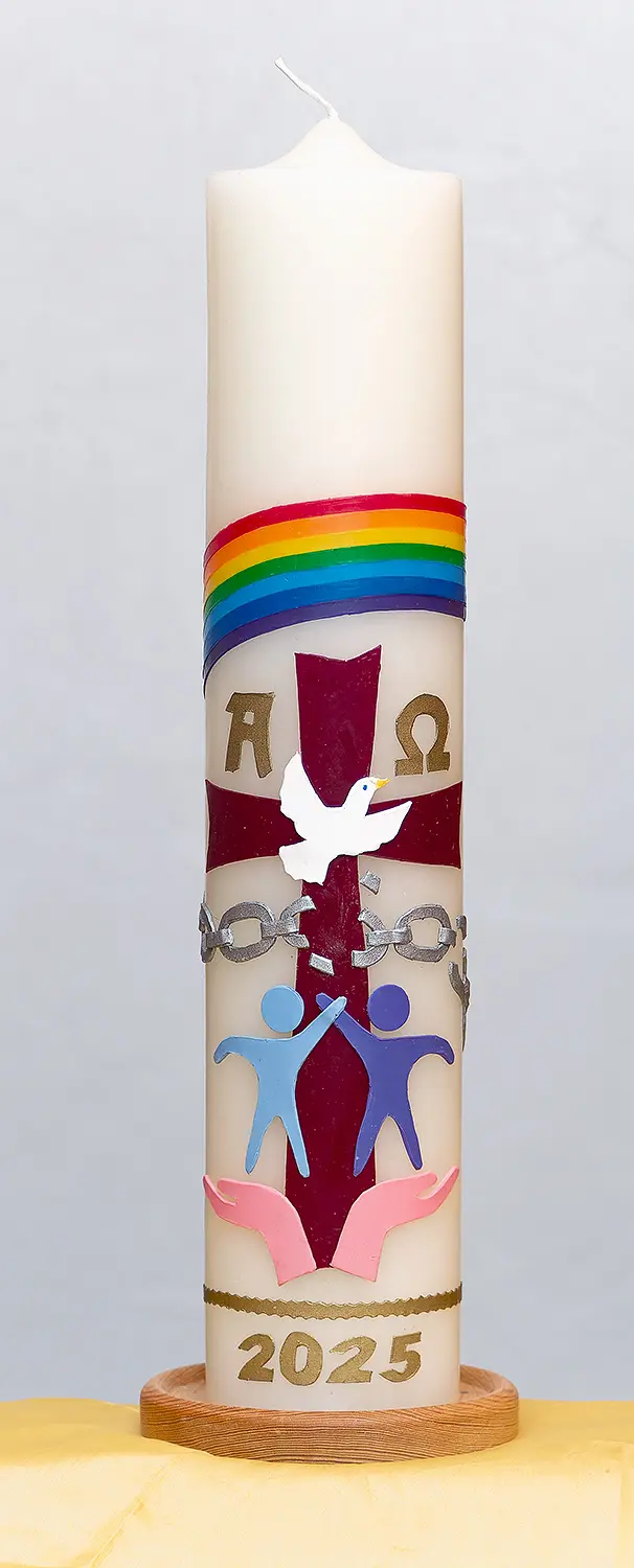 Osterkerze der Lutherkirche der Ev. Mirjamgemeinde Offenbach für 2025